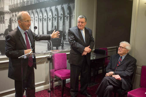 After a welcoming address by AAPA President John Keating, our Honorary Co-President and British Ambassador Sir Peter Ricketts stepped up to the podium. Turning to John Morris, he applauded him not only for his coverage of the war, but more than that for his work that has inspired and encouraged generations of journalists. Referring to the many conflict zones around the globe, Sir Peter commented: “When journalists get killed doing their job or, even worse, killed for doing their job, then we realize how important it is to have journalists; you are all symbols of our freedom.”