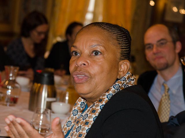 During an hour-long Q&A session, Mme Taubira outlined some of the recent measures that have been adopted in the security-judicial domain and further steps under consideration. She acknowledged that France “is confronting a very, very difficult moment in time. Obviously, the subject that is forced upon us all is the way to protect the population and fight against terrorism.”