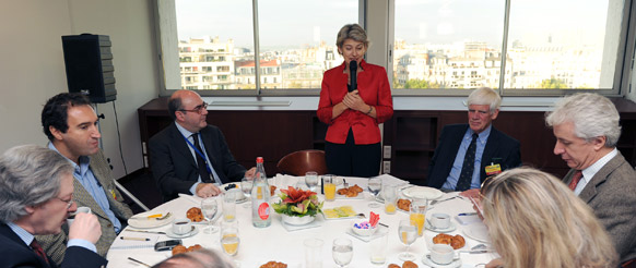 Some thirty members had a first-hand chance to probe Irina Bokova’s background, experience and plans for UNESCO following her successful election as Director General of the Paris-based agency, in a newsworthy, lively event on Oct. 7.