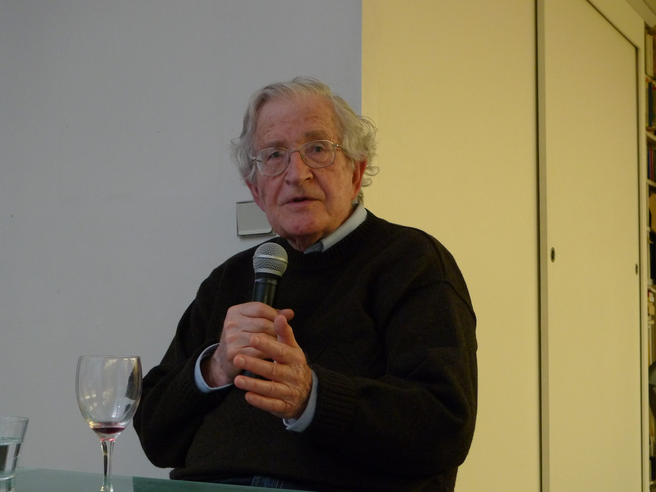 MIT Prof. Emeritus Noam Chomsky told a standing room audience of some 50 Anglo-American Press Association members and guests Friday evening, May 28 that the Obama Administration’s continuation of Bush Administration policies has been no surprise for him and that Europeans seem to like President Obama simply because he is more “polite” about pursuing the same basic policies.