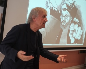 Himself accompanied by a security agent, Plantu discussed the threats to the freedom of expression faced by cartoonists, not only from authoritarian regimes or religious fanatics, but also within our own Western “liberal” societies.